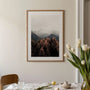 Dieses elegante Poster zeigt eine malerische Ansicht schneebedeckter Berge, die sich aus einem sanften Nebel erheben, im Vordergrund Bäume in warmen Herbstfarben. Das sanfte Licht und die natürlichen Farben schaffen eine ruhige, harmonische Komposition, die eine Atmosphäre der Stille und Verbundenheit mit der Natur vermittelt. Dieses Foto eignet sich ideal für moderne und skandinavische Interieurs und ist perfekt für Wohnzimmer, Schlafzimmer, Büros und kreative Räume.