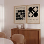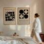 Dieses Poster Set 2er ist vom Bauhaus-Design inspiriert und kombiniert starke schwarze Formen mit warmen Beigetönen.