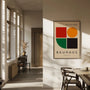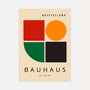 Dieses Bauhaus-inspirierte Poster zeigt die perfekte Balance zwischen Geometrie und Emotion. Schlichte Formen in kräftigem Rot, Orange, Grün und Schwarz heben sich deutlich von einem hellen Hintergrund ab und schaffen eine Komposition, die klar, modern und energiegeladen wirkt – mit einer selbstbewussten, grafischen Note.