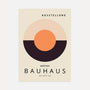 Dieses bauhaus-inspirierte Poster zeigt eine minimalistische Anordnung konzentrischer Formen in warmem Terrakotta, sanftem Beige und tiefem Schwarz. Die kreisförmige Komposition steht für Balance und Einheit der Form – zentrale Ideen, die mit Bauhaus-Design verbunden sind – und bleibt dabei klar, modern und charakterstark.