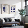 Dieses 2er Poster-Set verbindet Bauhaus-inspirierte Geometrie mit einer eleganten Palette in Marineblau. Kreise, organische Formen und klare lineare Teilungen schaffen eine ausgewogene Komposition mit ruhiger Struktur und moderner Präsenz.