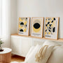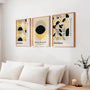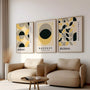 Das Bauhaus-Poster-Set aus 3 Stück „Dialog der Formen Weimar“ ist eine Kollektion, inspiriert von der Idee eines visuellen Dialogs zwischen einfachen Formen und Farbe – einem Schlüsselelement des Bauhaus-Denkens. Jedes Poster arbeitet mit einer anderen Kombination von Formen und erzeugt Spannung, Rhythmus und ein Gefühl räumlicher Balance.