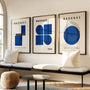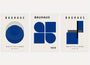 Das dominante, tiefe Marineblau in Kombination mit einem hellen, neutralen Hintergrund verleiht den Postern einen eleganten und zeitlosen Charakter. Die Kompositionen sind reduziert, klar und visuell konsequent – ganz im Sinne des Bauhauses, in dem die Form der Klarheit und Funktion untergeordnet ist.