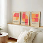 Das Bauhaus-Poster-Set aus 3 Stück „Weiche Geometrie 1923“ ist eine subtile Interpretation der modernistischen Bauhaus-Ästhetik, basierend auf der Harmonie abgerundeter Formen und einer warmen Farbpalette. Die Kombination aus Koralle, Pfirsich und Beige schafft eine ruhige und zugleich ausdrucksstarke Komposition.