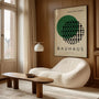 Dieses Bauhaus-inspirierte Poster verbindet Naturgefühl und Struktur in einer ruhigen, modernen Komposition. Grüne Elemente treffen auf präzise schwarze geometrische Punkte und erzeugen einen ausgewogenen Rhythmus, der geordnet und zugleich organisch wirkt – minimalistische Wandkunst mit leiser, selbstbewusster Präsenz.