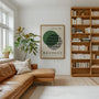 Perfekt für designorientierte Räume passt es besonders gut in minimalistische Interieurs, in denen Klarheit und Harmonie zählen. Gerahmt wirkt es sauber und galerieartig, als ungerahmter Kunstdruck lässt es sich flexibel mit eigenem Rahmen und Layout gestalten. Der Kontrast aus Grün und Schwarz bringt Tiefe und hält den Look klar und zeitgemäß.