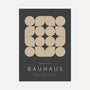 Dieses Bauhaus-Poster zeigt eine klare geometrische Komposition, in der Kreise und Quadrate einen fast hypnotischen, ausgewogenen Rhythmus bilden. Warme Beigeformen heben sich vom dunklen Hintergrund ab und wirken zugleich elegant und selbstbewusst modern.