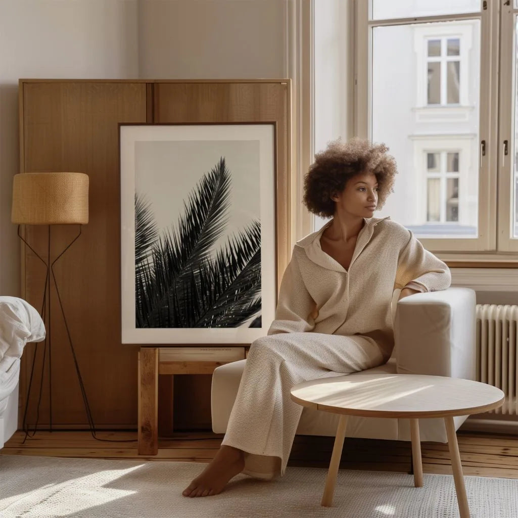 Das Poster „Schwarz-Weiß-Palme“ ist eine moderne, minimalistische Fotografie, die schlanke Palmenwedel in eleganten Monochromtönen zeigt. Es harmoniert perfekt mit minimalistischer, skandinavischer und moderner Einrichtung und verleiht ihr Leichtigkeit, Harmonie und eine raffinierte Ästhetik. Dieses zeitlose Schwarz-Weiß-Bild mit seiner starken grafischen Aussagekraft eignet sich ideal für Wohnzimmer, Schlafzimmer, Büro oder die private Galerie.