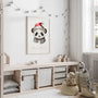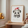 Poster mit einem süßen Panda in einer Weihnachtsmütze