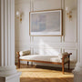 Helles Blau, zartes Lavendel und perlmuttartige Weißtöne verschmelzen zu einer Szene voller Luft und Stille. Statt Details zu betonen, steht die Stimmung im Mittelpunkt – ein klassisches Beispiel für den Impressionismus.