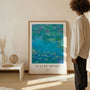 Dieses Poster zeigt „Seerosen“ (1906) von Claude Monet, inspiriert vom Garten in Giverny. Zarte Seerosen treiben über dem Teich, während Farbe und Spiegelung auf dem Wasser ineinanderfließen und eine ruhige, immersive Atmosphäre schaffen.