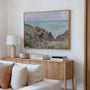 Der Leinwanddruck ist in einen Schattenfugenrahmen eingesetzt, wodurch ein dezenter Abstand zwischen dem Rand des Drucks und dem Rahmen entsteht, was einen Eindruck von Leichtigkeit und Tiefe vermittelt.