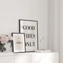 Ein minimalistisches Poster mit dem Slogan „Nur gute Laune“ in ausdrucksstarker, eleganter Typografie ist eine einfache Möglichkeit, Ihrem Zuhause Leichtigkeit und positive Energie zu verleihen. Die Schwarz-Weiß-Komposition passt perfekt zu modernen, skandinavischen und Loft-Einrichtungen – ideal für Wohnzimmer, Schlafzimmer, Büro oder Arbeitsplatz. Auch als Geschenk ist es vielseitig einsetzbar. Wenn Sie klare Formen und trendige Wanddekoration mögen, ist dieses Poster perfekt für eine Bilderwand oder als Solitär.