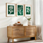 Der starke Kontrast zwischen tiefem Grün und weichem Weiß sorgt für einen mutigen, aber eleganten Effekt, während organische Formen die Komposition ruhig und ausgewogen halten. Als abgestimmtes Poster Set (3er) bringt das Trio Tiefe und Charakter an die Wand, ohne den Raum zu dominieren.