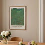 „Blühender Mohn“ von Gustav Klimt verkörpert die rhythmische Eleganz des Jugendstils. Leuchtende Mohnblüten entfalten sich zwischen satten Grüntönen und kühlen Nuancen und schaffen eine lebendige, zugleich ausgewogene Bildwirkung.
