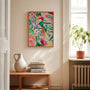 Gerahmt wirkt das Poster besonders elegant, während ein ungerahmter Druck eine klare Galerie-Ästhetik schafft.