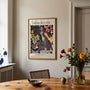 Dieses Poster zeigt Henri Matisses Werk Woman in a Purple Coat (1937), ein elegantes Porträt, das expressive Farbe mit dekorativer Komposition verbindet. Der kräftige violette Mantel bildet den visuellen Mittelpunkt, während kontrastreiche Muster dem Bild Rhythmus und Bewegung verleihen.