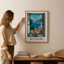 Dieses Henri-Matisse-inspirierte Poster „Okno na Amalfi“ bringt das Gefühl eines italienischen Sommers direkt in dein Zuhause. Der Blick aus einem offenen Fenster auf das türkise Meer, die Berge und die charmante Stadt Amalfi schafft eine Szene voller Licht, Farbe und belebender Energie.