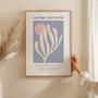Dieses Henri-Matisse-inspirierte Poster zeigt eine elegante, minimalistische Komposition, geprägt von der Ästhetik seiner ikonischen Scherenschnitt-Arbeiten. Zarte Hellblautöne werden von Puderrosa und Cremeweiß begleitet und schaffen eine Wandkunst, die ruhig, leicht und zurückhaltend edel wirkt.