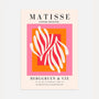 Dieses Henri-Matisse-inspirierte Poster ist eine expressive Komposition voller Farbe und moderner Ausstrahlung. Korallige Pink- und Orangetöne treffen auf weiche Creme-Nuancen und werden durch Rot lebendig ergänzt – beeinflusst vom ikonischen Stil der Papiers Découpés.
