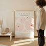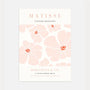 Dieser Poster im Stil von Matisse zeigt eine weiche florale Komposition, inspiriert von der Ästhetik der Scherenschnitte. Große, stilisierte Blüten in Rosa werden durch warme Akzente ergänzt und verleihen dem Motiv eine luftige, lebendige Wirkung.