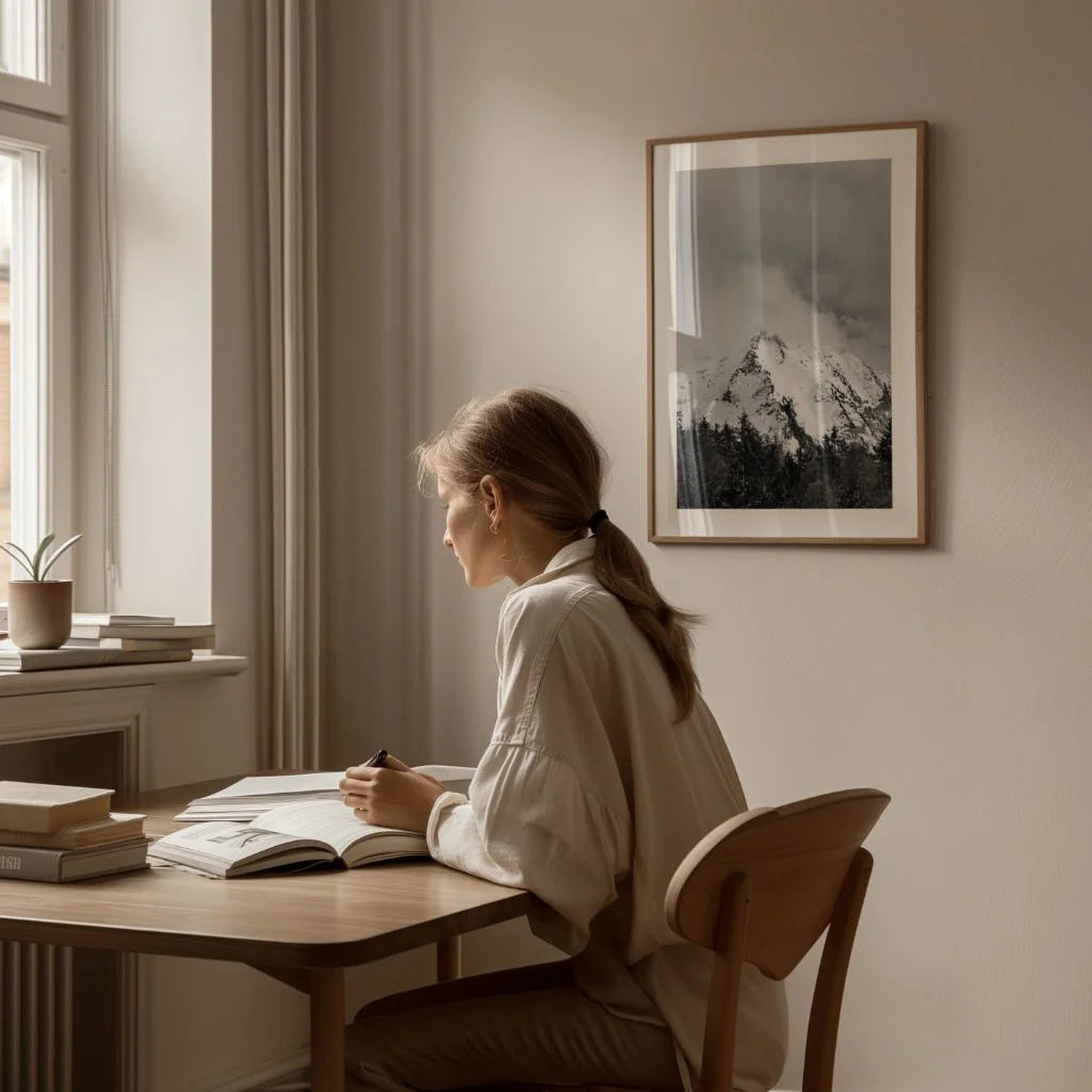 Dieses Schwarz-Weiß-Poster, das einen majestätischen, schneebedeckten Gipfel aus dichtem Nebel zeigt, ist die perfekte Dekoration für Liebhaber von Minimalismus, Natur und elegantem Stil. Die Schwarz-Weiß-Fotografie verleiht Wohnzimmer, Schlafzimmer oder Büro eine friedliche, harmonische und künstlerische Atmosphäre. Die markanten Kontraste, die subtilen Tonwertübergänge und die natürliche Schönheit der Landschaft machen es zu einem zeitlosen Wandbild, das sich ideal für moderne Interieurs eignet.