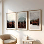 Dieses 3er-Set Naturfotografie fängt die stille Schönheit nebliger Berg- und Waldlandschaften ein: Nebel über Seen, geschichtete Berge und warme Herbstwälder erzeugen eine ruhige, atmosphärische Stimmung. Weiches Licht und gedeckte Töne bringen Tiefe und Balance in moderne Interiors.