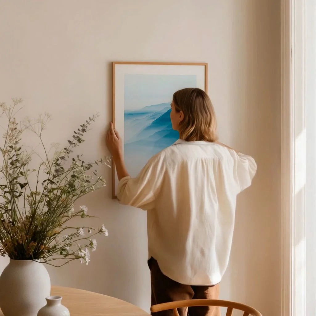 Die reduzierte Komposition bringt Ruhe und Offenheit in den Raum und wirkt besonders beruhigend in klar gestalteten Wohnbereichen.