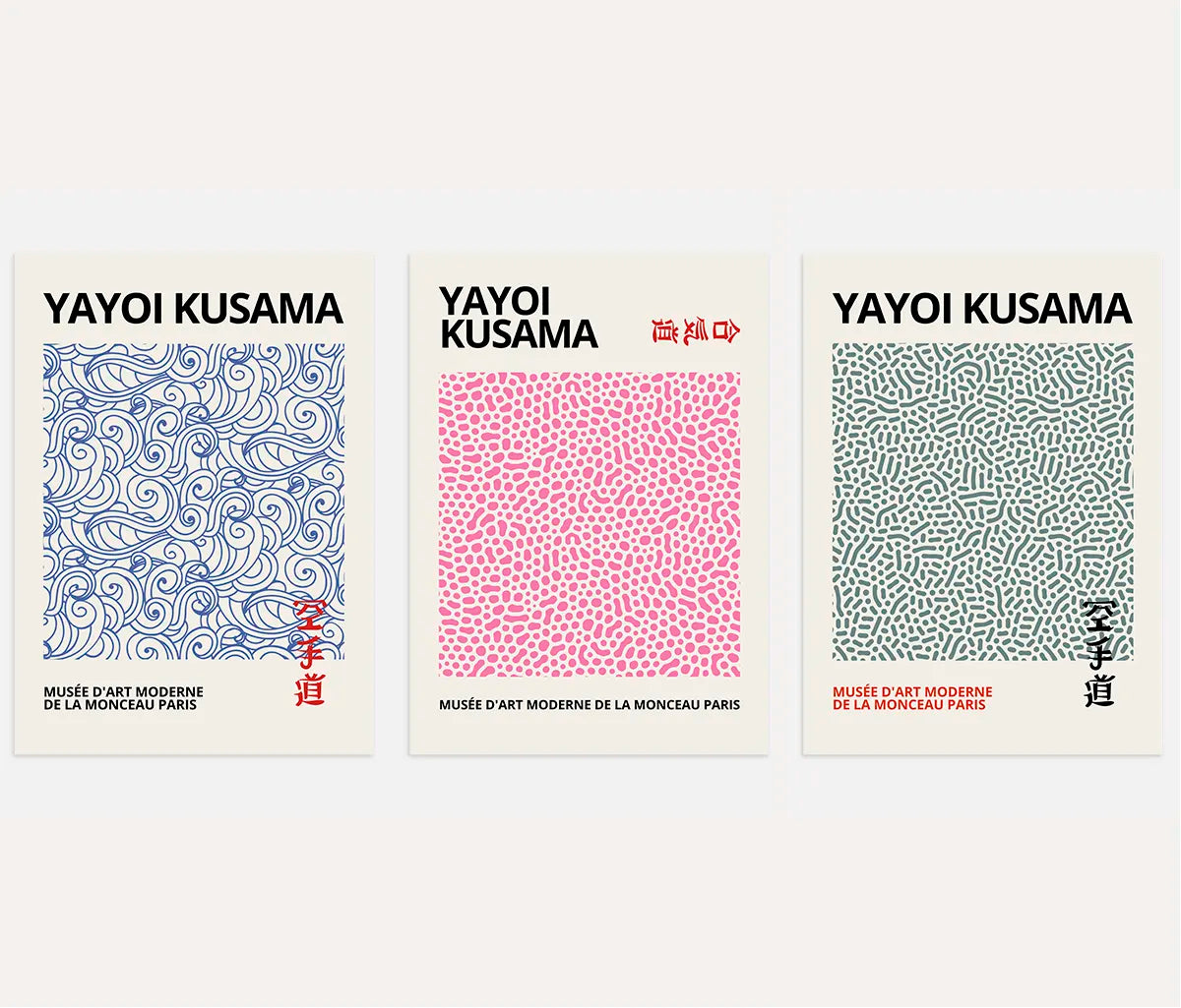 Jedes Motiv wirkt wie aus einem einzigen Atemzug gezeichnet: dicht, aber harmonisch, meditativ und zugleich grafisch klar. Die Farbpalette bleibt frisch und modern – Rosa, Blau und Grün – und bringt Leichtigkeit, Wärme und einen sanften Akzent an die Wand, ohne den Raum zu überladen. Zusammen entfalten die drei Poster ihre stärkste Wirkung: wie eine kuratierte Serie, die Ordnung schafft und gleichzeitig ein ruhiges, kreatives Gefühl hinterlässt.