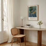 Tiefe Blau- und Grüntöne bilden ein elegantes Fundament für wärmere Akzente. Dieses Kunstposter passt perfekt in moderne, minimalistische oder auch boho- und vintage-inspirierte Räume und setzt einen zeitlosen, musealen Akzent.