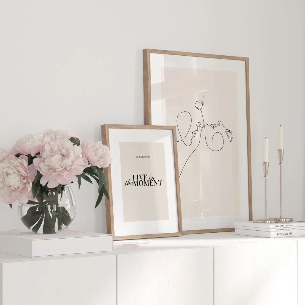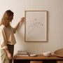 Die schwarze Linie auf sanftem Beigeton schafft eine warme, ruhige Komposition. Dieses Poster passt ideal zu modernistischen, skandinavischen und Boho-Interieurs und verleiht Schlaf- oder Wohnräumen eine subtile, romantische Note.