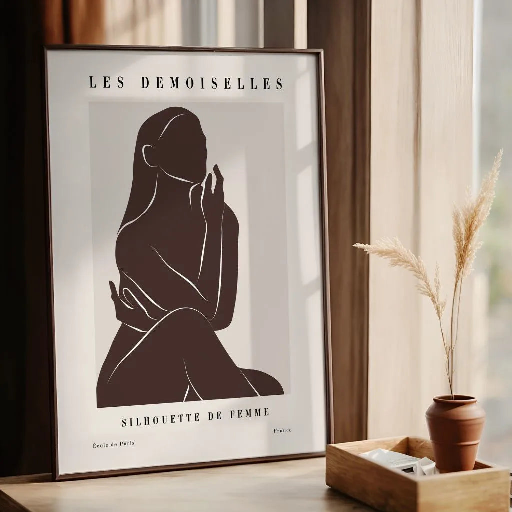 Dieses Line Art Poster passt zu modernen, skandinavischen, japandi und boho Wohnstilen. Als gerahmtes Poster wirkt es präzise und fertig, als ungerahmter Druck lässt es sich flexibel in eine kuratierte Bilderwand integrieren.