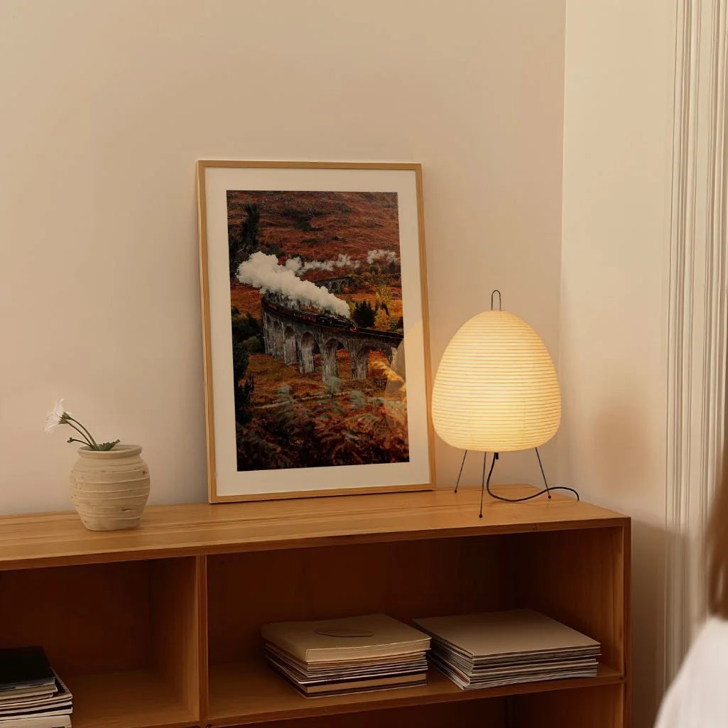 Dieses einzigartige Poster zeigt eine legendäre Dampflok, die über ein majestätisches Steinviadukt gleitet, eingehüllt in weiße Rauchwolken und herbstliche Farben. Die Szene, voller Nostalgie, Dynamik und filmreifer Atmosphäre, entführt Sie direkt in die Welt des Reisens, des Abenteuers und der klassischen Eisenbahn. Warme Braun- und Goldtöne harmonieren mit der schlichten Architektur der Brücke und schaffen ein Bild, das perfekt zu Vintage-, Boho-, Industrie- und modernen Interieurs passt. Dieses Poster beschwört eine Atmosphäre von Geheimnis, Leidenschaft und dem einzigartigen Charme vergangener Zeiten herauf.