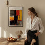 Dieser Poster im Stil von Mark Rothko zeigt eine kraftvolle Farbstimmung mit starkem Kontrast. Schwarz steht im Mittelpunkt und wird von intensiven Nuancen begleitet, wodurch ein markanter Eindruck entsteht, der gleichzeitig modern und emotional wirkt.