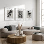 Dieses 3er-Set schwarzer Botanical-Silhouetten zeigt elegante Pflanzenformen in kräftigem Schwarz auf weichen, neutralen Hintergründen. Inspiriert von moderner botanischer Illustration und französischem Minimalismus stehen organische Formen, Balance und klare Einfachheit im Mittelpunkt.